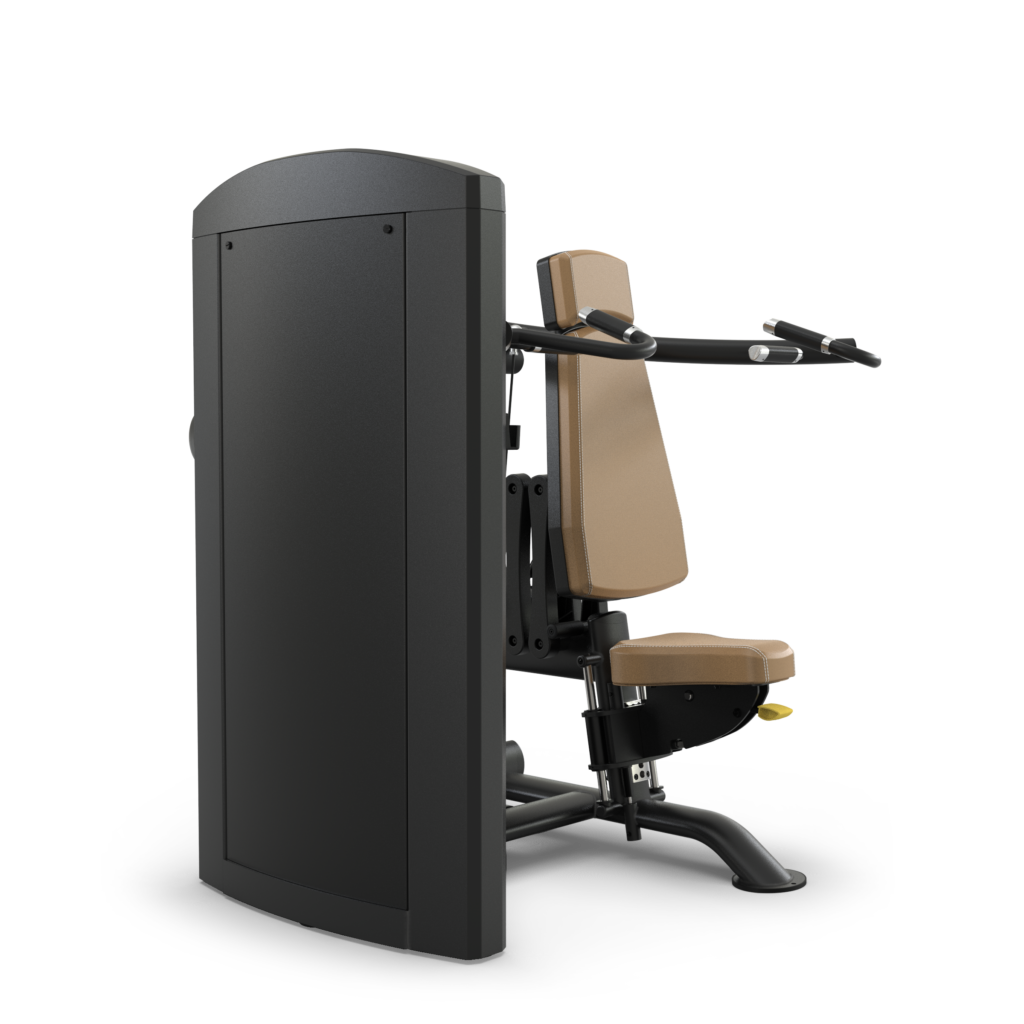 The seat can be adjusted into eight different positions while seated or standing and features premium-grade linear bearings and gas cylinder assist for stable, low friction adjustments. The unilateral press arms converge at 20 degrees above and forward of the shoulder, enhancing user safety. Similarly, the dual handgrips expand users’ motion range without impingement.