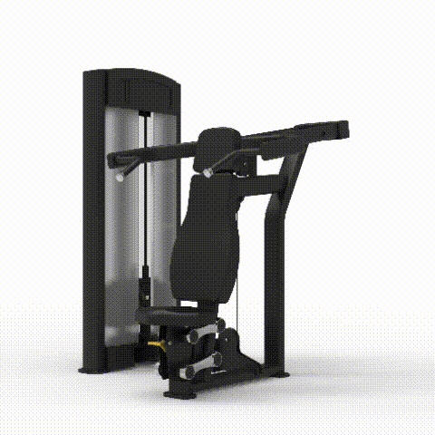 Our converging shoulder press has ergonomic, oversized grips with several positions suited for different sized individuals. You can adjust the seat pad to suit yourself, and easily increase the load by simply pushing on a lever.